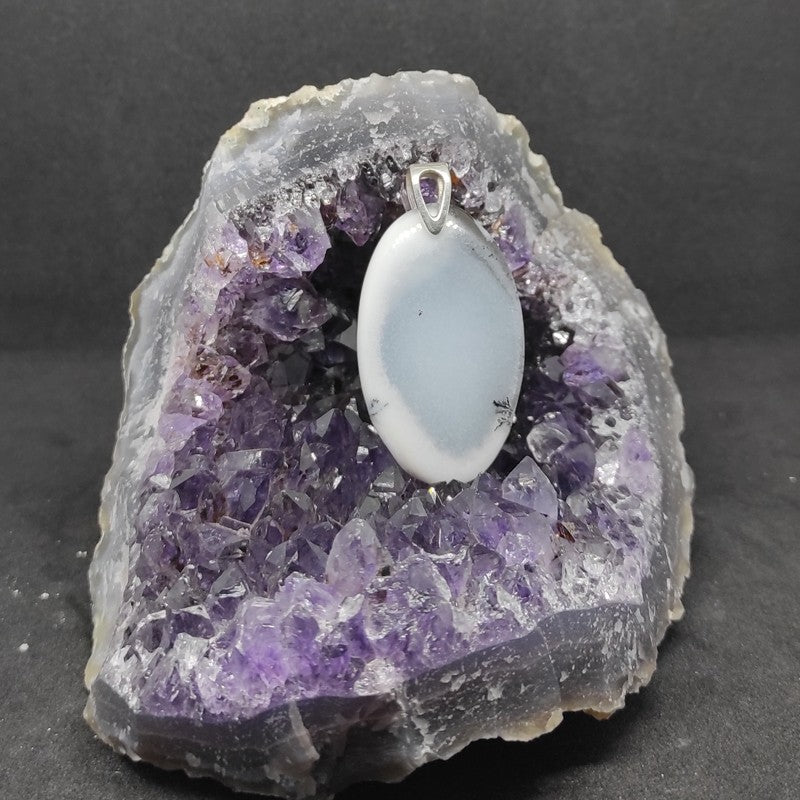 Pendentif en Cabochon d'Agate Dendritique de forme ovale et bélière en argent