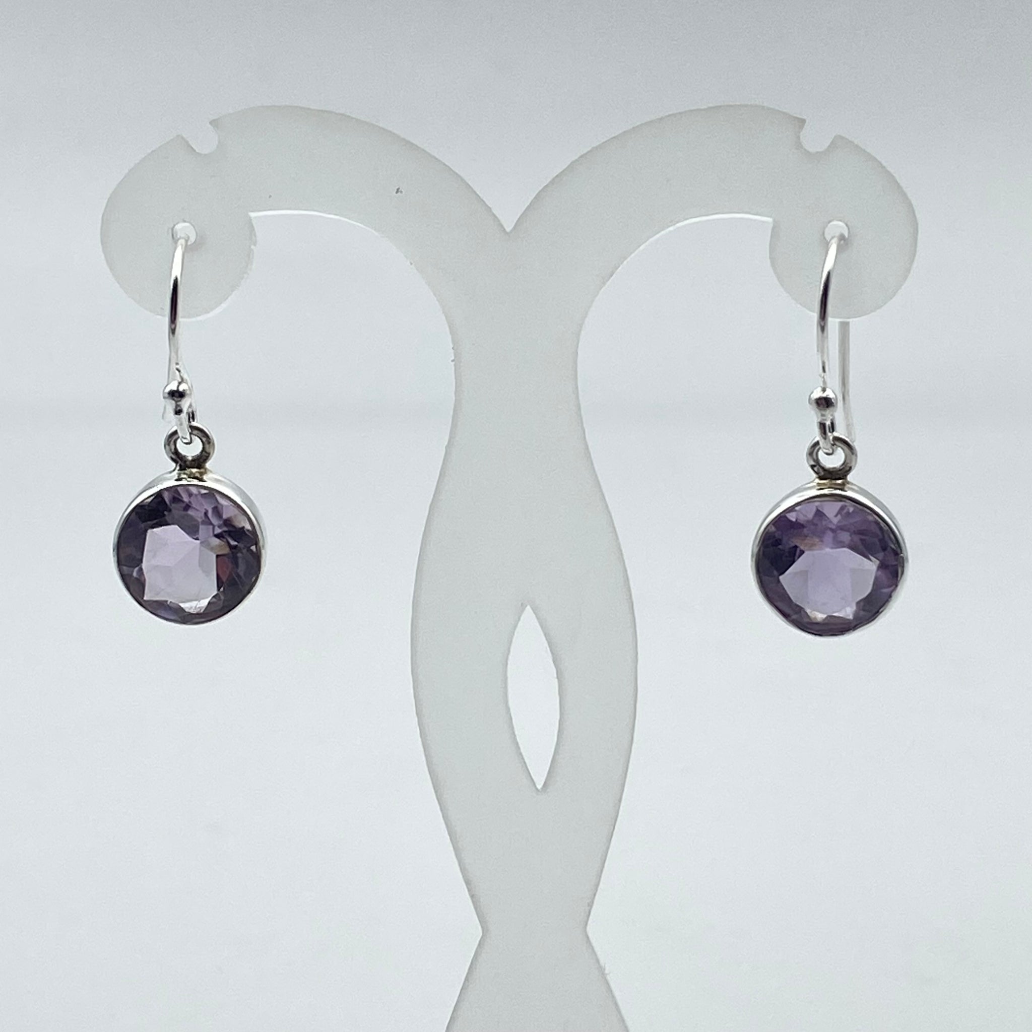 Paire de Boucles d'oreilles en Argent serti d'une pierre taillée d'Améthyste