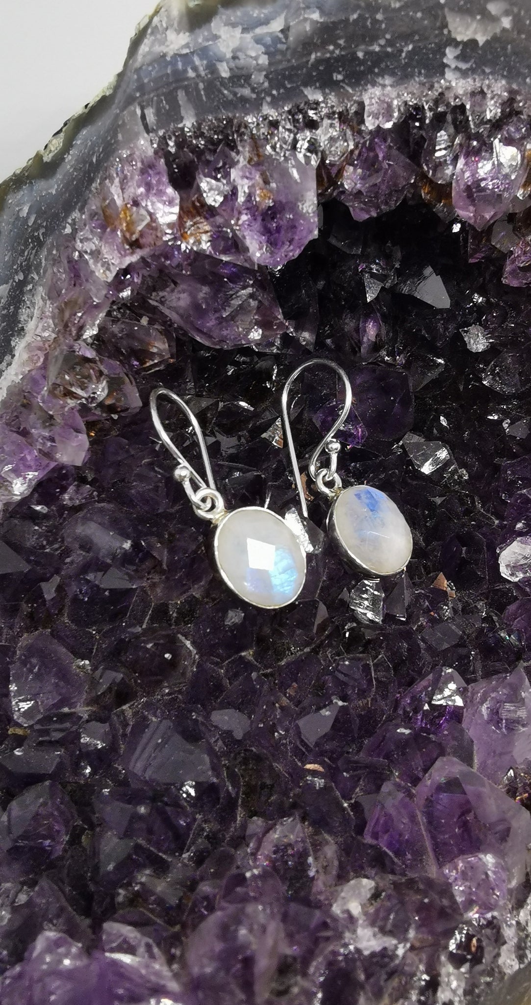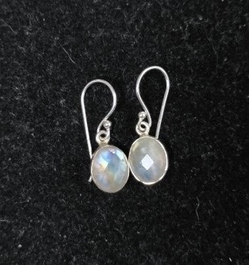 Paire de Boucles d'oreilles en Argent serti d'une pierre taillée de Labradorite Blanche / Péristérite