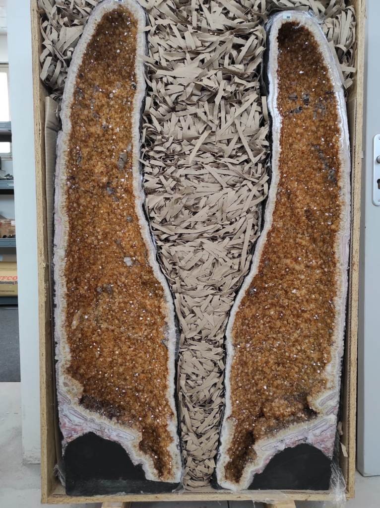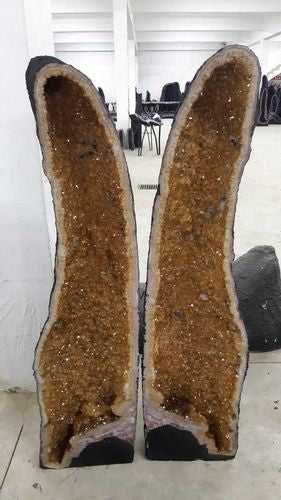 Paire de Géode de Citrine effet Ailes de Papillons