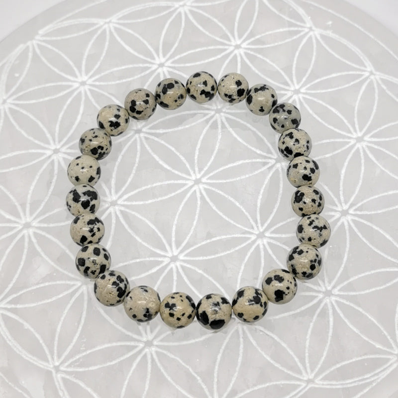 Bracelet élastique en pierre naturelle de Jaspe Dalmatien
