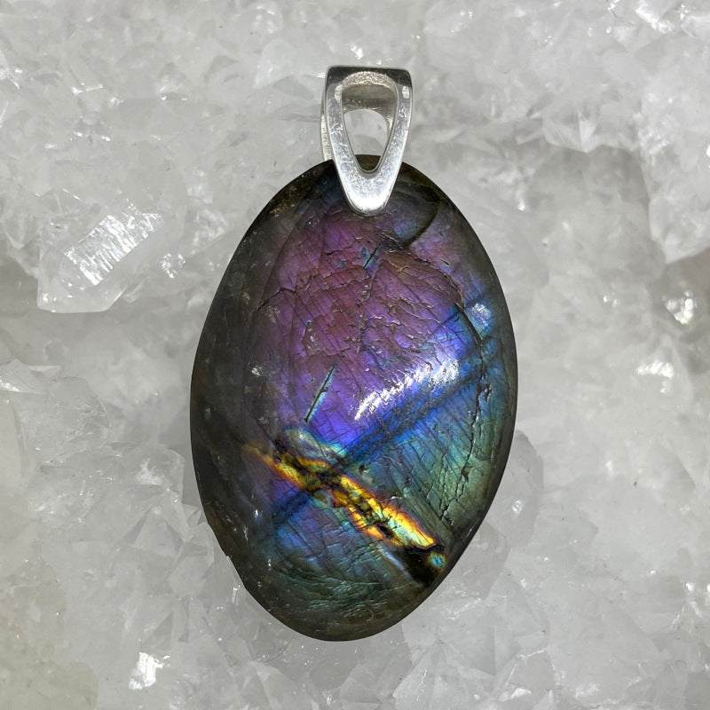 Pendentif en Cabochon de Labradorite de forme ovale et bélière en argent