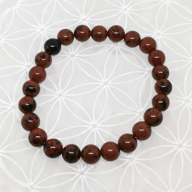 Bracelet élastique en pierre naturelle d'Obsidienne Acajou ou Mahogany
