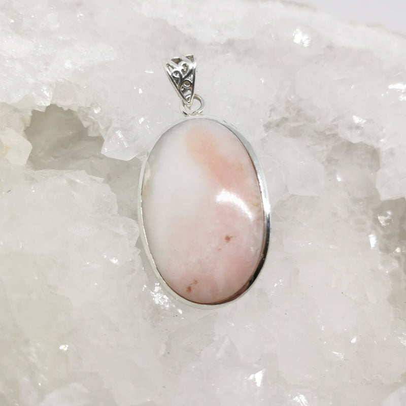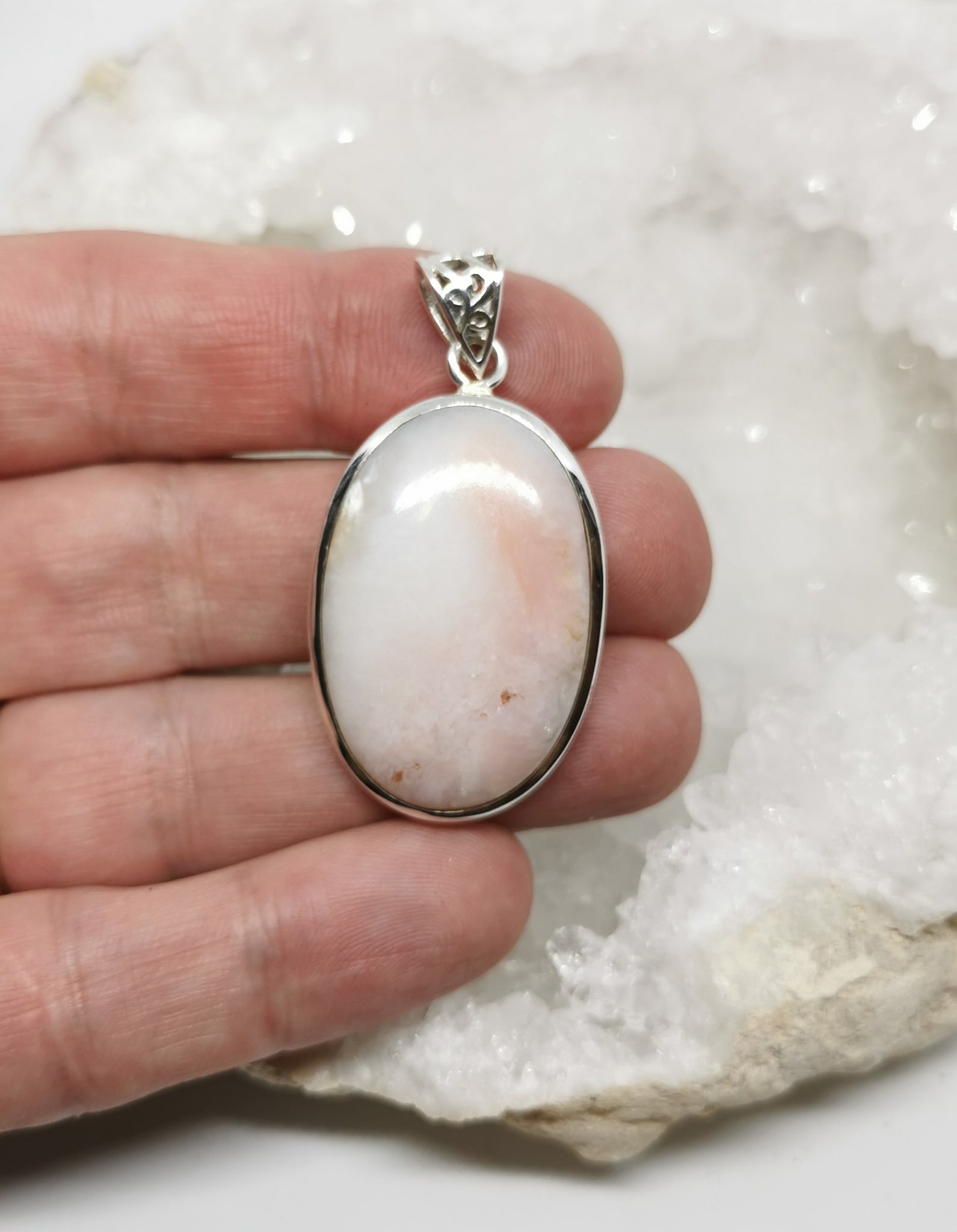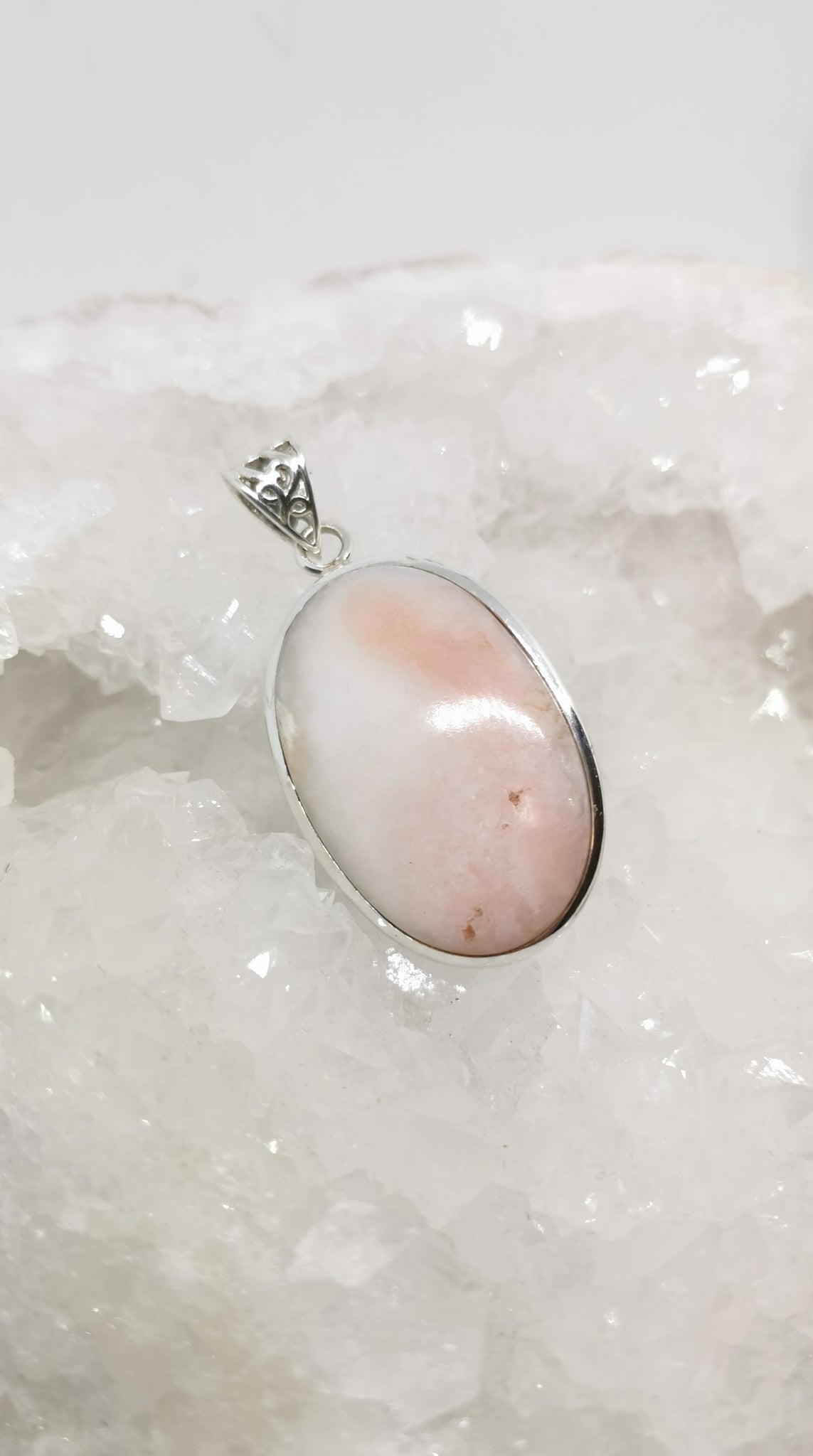 Pendentif et bélière en Argent serti d'une pierre d´Opale rose des Andes de forme ovale