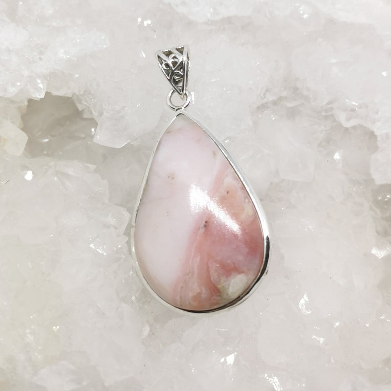 Pendentif et bélière en Argent serti d'une pierre d´Opale rose des Andes de forme goutte