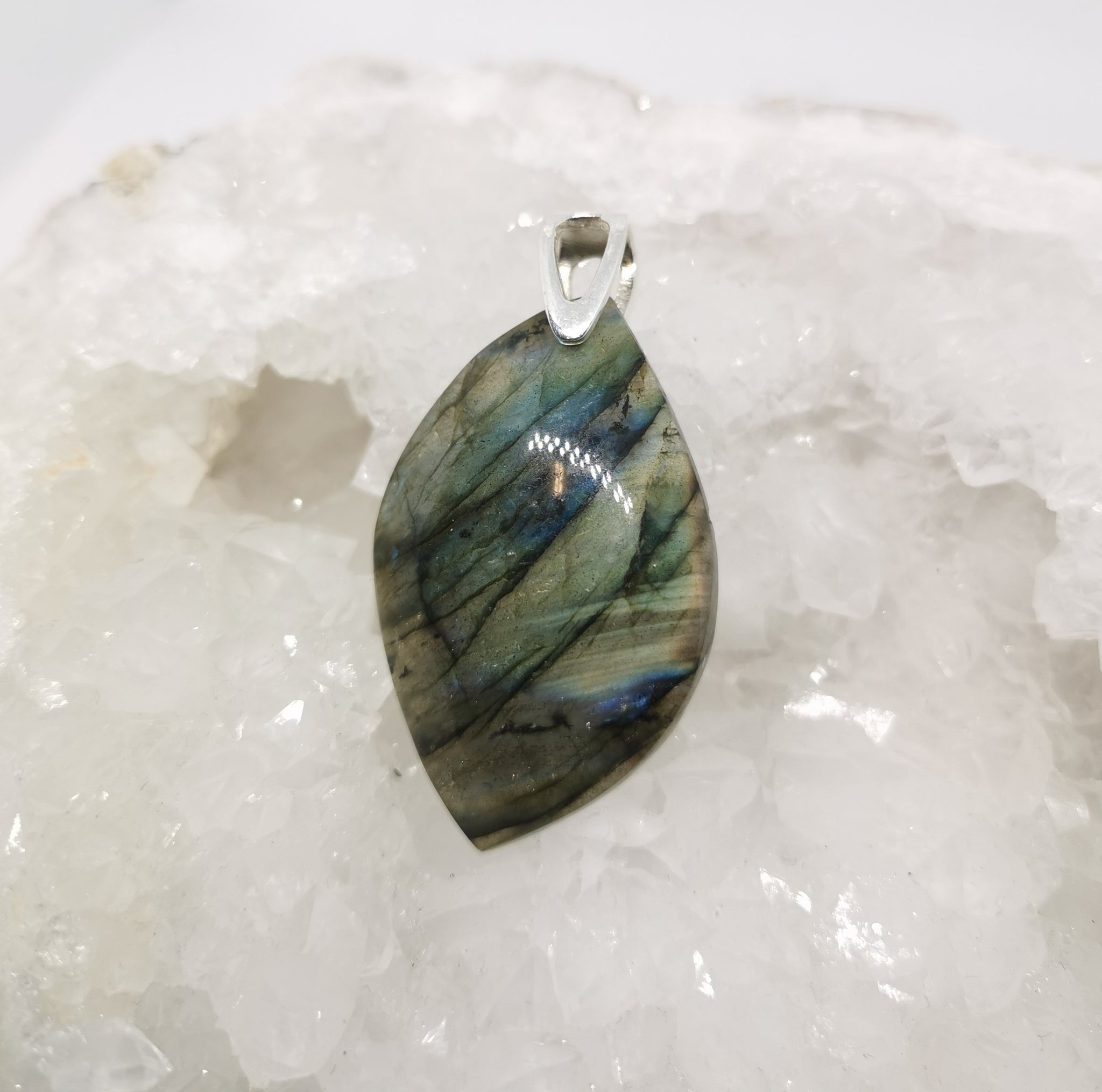 Pendentif en Cabochon de Labradorite et bélière en argent