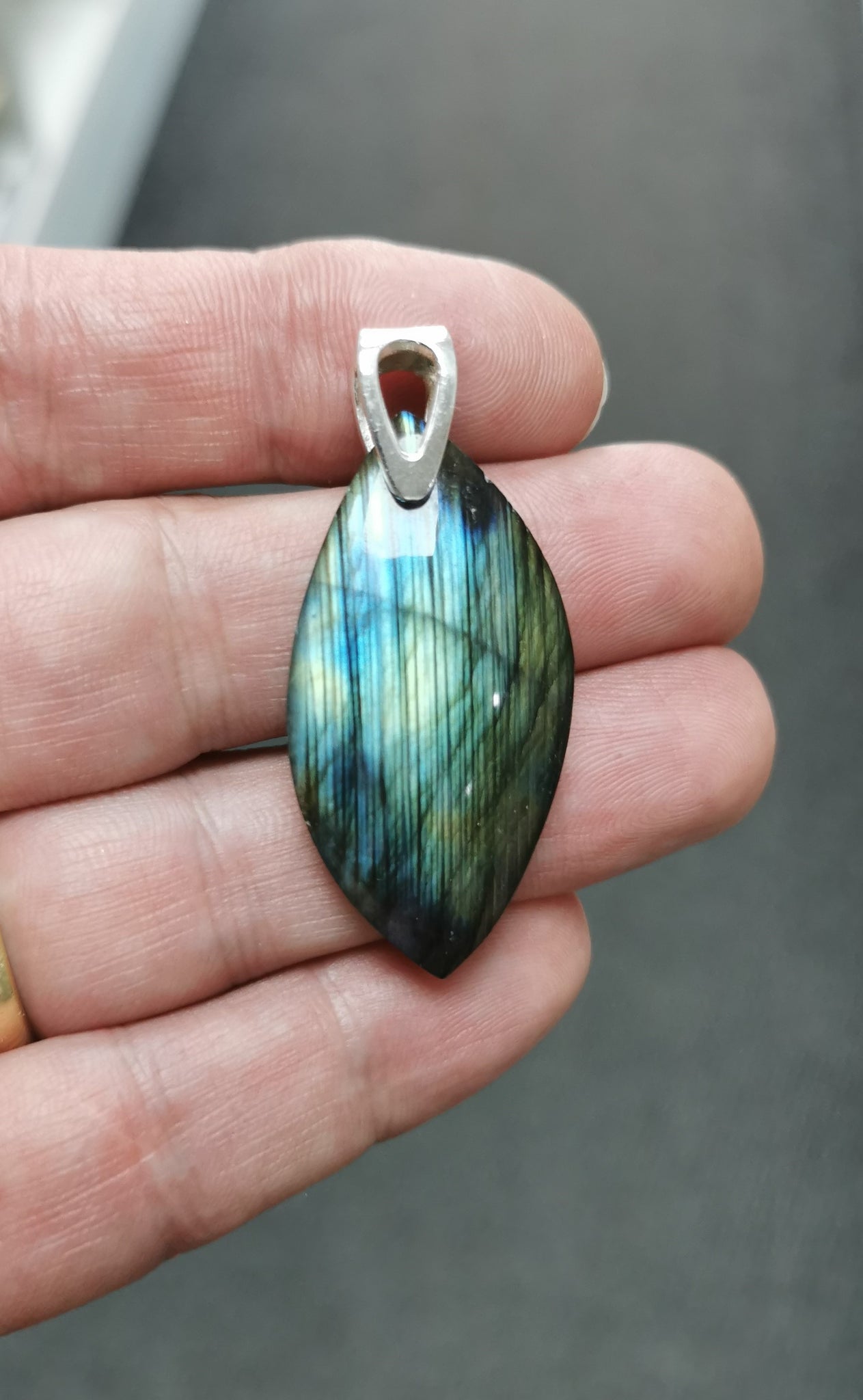 Pendentif en Cabochon de Labradorite et bélière en argent