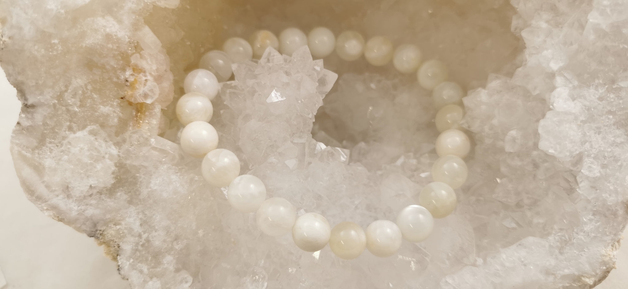 Bracelet élastique en Pierre de Lune Blanche naturelle