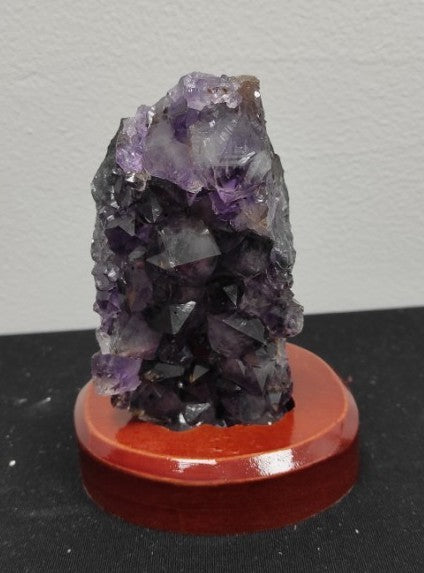 Amethyst on wooden base.