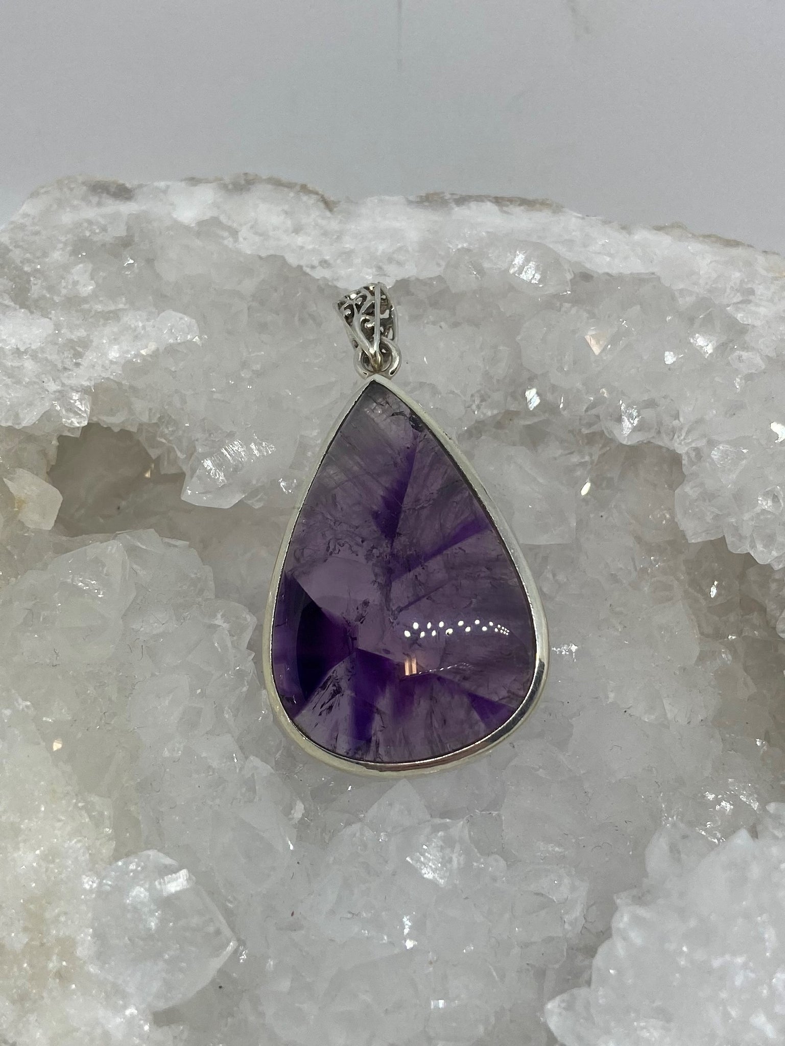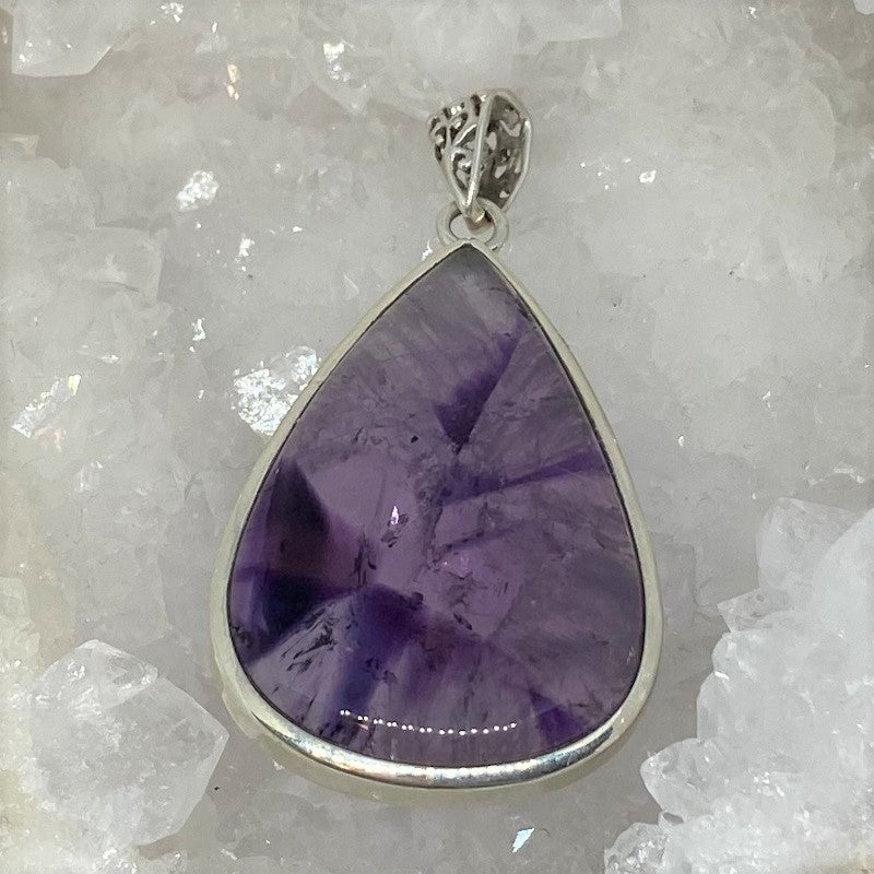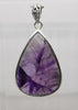 Silver pendant and bail inlaid with an Amethyst stone in the shape of a drop of water