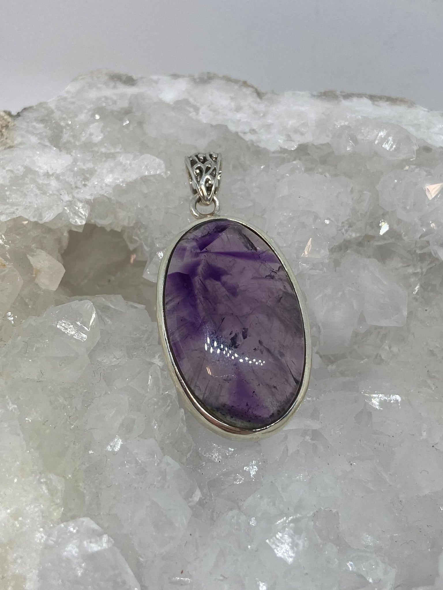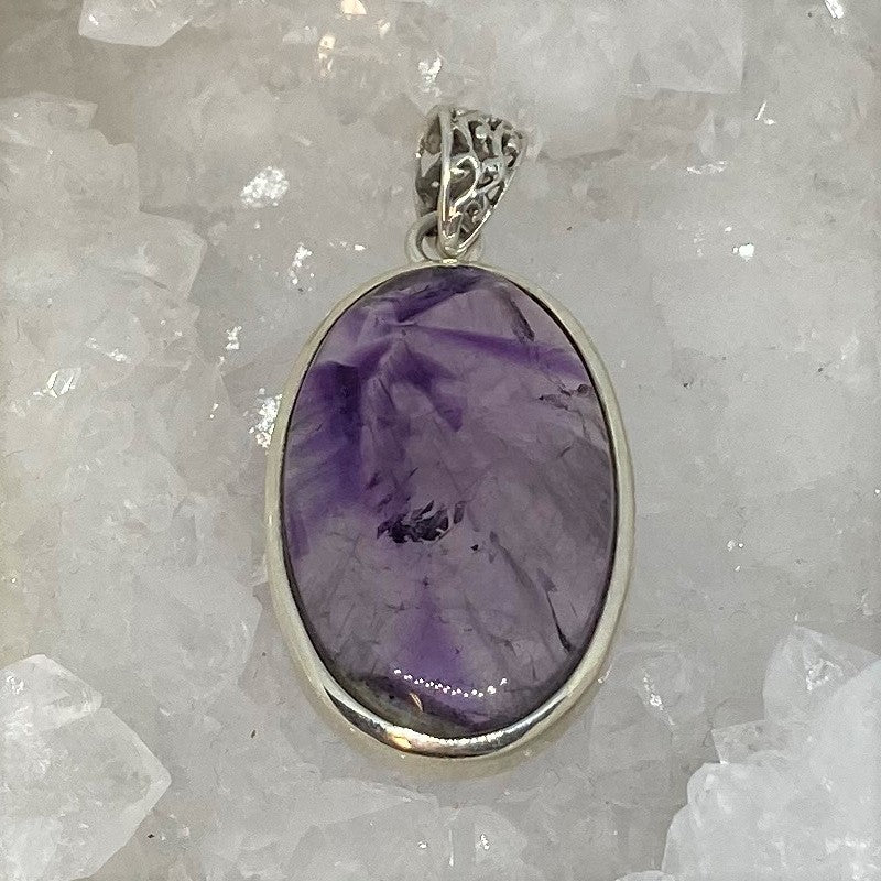 Silver pendant and bail inlaid with an oval-shaped Labradorite stone