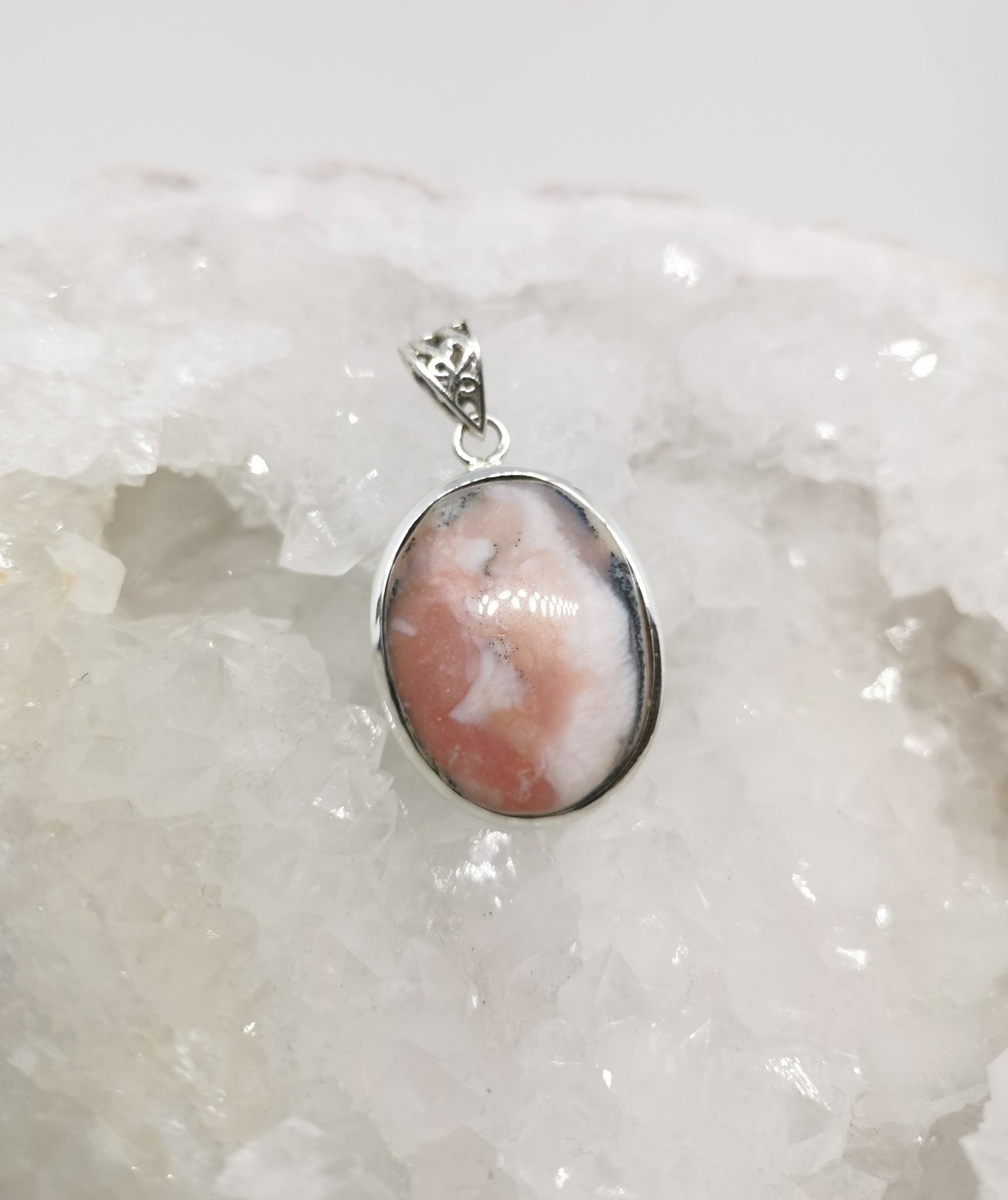 Pendentif et bélière en Argent serti d'une pierre d´Opale rose des Andes de forme ovale